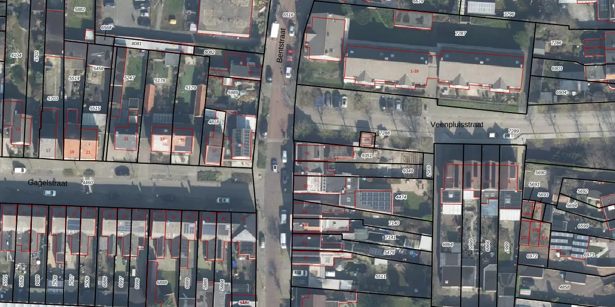 Het perceel waarop Bentstraat 56 staat heeft een oppervlakte van 218 m². Dit is een middelgroot perceel. De perceeloppervlakte wordt geregistreerd door het Kadaster. Gedetailleerde informatie over de maten van dit perceel kunt u vinden in het rapport Kadastrale kaart met maatvoering van Bentstraat 56.