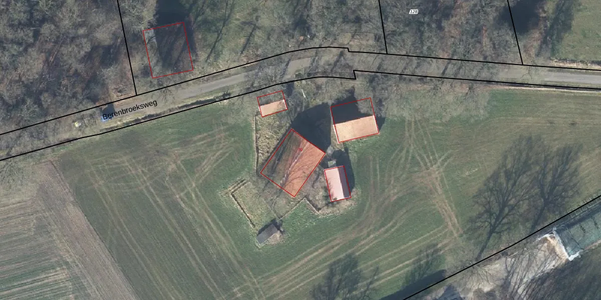 Het perceel waarop Berenbroeksweg 70 staat heeft een oppervlakte van 2,8 ha. Dit is een zeer groot perceel. De perceeloppervlakte wordt geregistreerd door het Kadaster. Gedetailleerde informatie over de maten van dit perceel kunt u vinden in het rapport Kadastrale kaart met maatvoering van Berenbroeksweg 70.