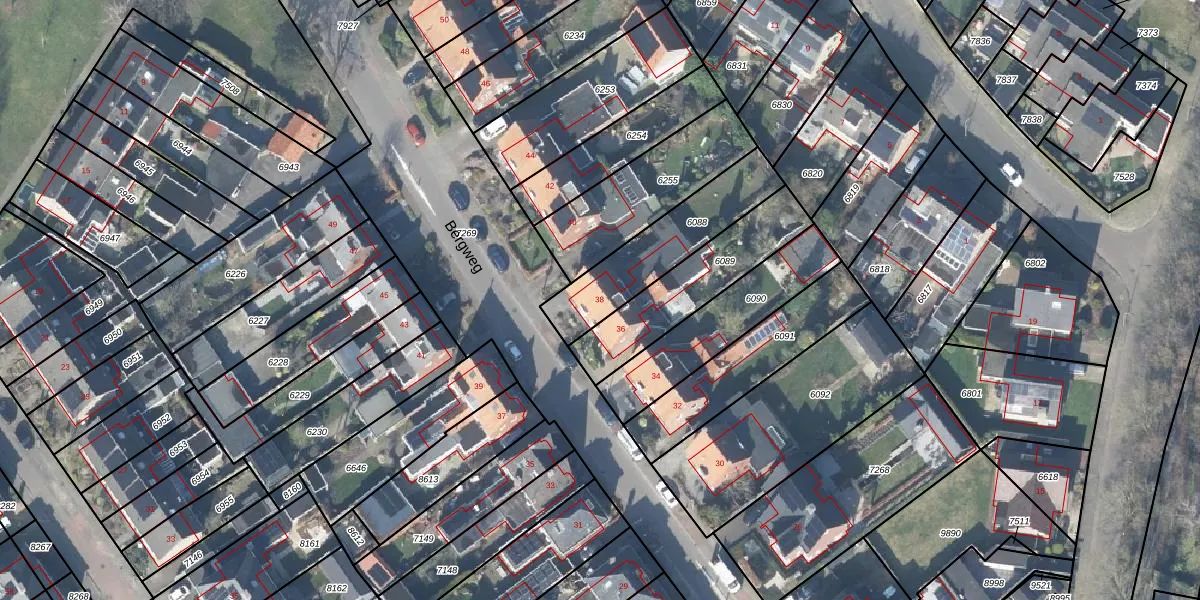 Het perceel waarop Bergweg 38 staat heeft een oppervlakte van 361 m². Dit is een groot perceel. De perceeloppervlakte wordt geregistreerd door het Kadaster. Gedetailleerde informatie over de maten van dit perceel kunt u vinden in het rapport Kadastrale kaart met maatvoering van Bergweg 38.