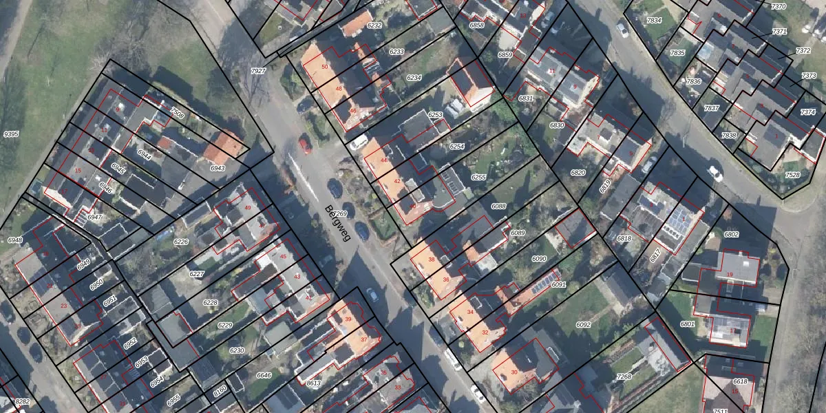 Gebruik de zoekbalk of klik op een perceel voor informatie over de adressen binnen dit perceel.
