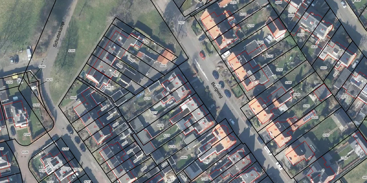 Het perceel waarop Bergweg 47 staat heeft een oppervlakte van 302 m². Dit is een groot perceel. De perceeloppervlakte wordt geregistreerd door het Kadaster. Gedetailleerde informatie over de maten van dit perceel kunt u vinden in het rapport Kadastrale kaart met maatvoering van Bergweg 47.