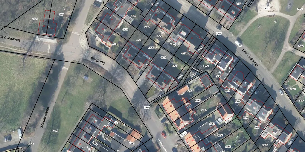 Bergweg 54 is gelegen op kadastraal perceel LNK00C6826. Deze kadastrale aanduiding is uniek en wordt gebruikt door het Kadaster om eigendomsrechten en andere zakelijke rechten vast te leggen. Het perceel maakt onderdeel uit van de kadastrale gemeente Lonneker.