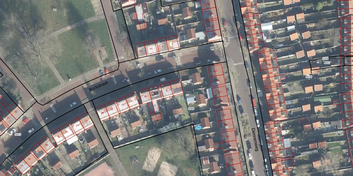 Het perceel waarop Berkstraat 1 staat heeft een oppervlakte van 4163 m². Dit is een zeer groot perceel. De perceeloppervlakte wordt geregistreerd door het Kadaster. Gedetailleerde informatie over de maten van dit perceel kunt u vinden in het rapport Kadastrale kaart met maatvoering van Berkstraat 1.