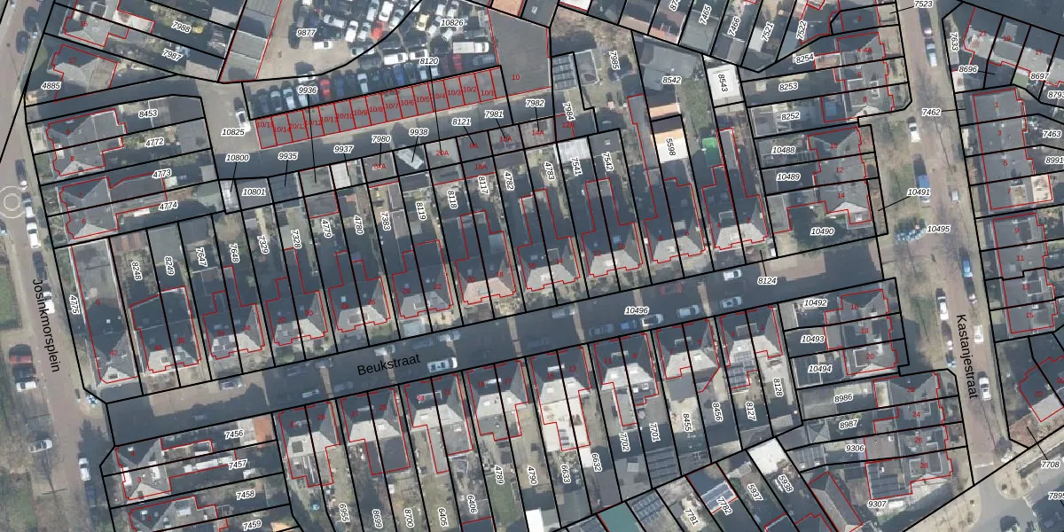 Het perceel waarop Beukstraat 16 staat heeft een oppervlakte van 181 m². Dit is een middelgroot perceel. De perceeloppervlakte wordt geregistreerd door het Kadaster. Gedetailleerde informatie over de maten van dit perceel kunt u vinden in het rapport Kadastrale kaart met maatvoering van Beukstraat 16.