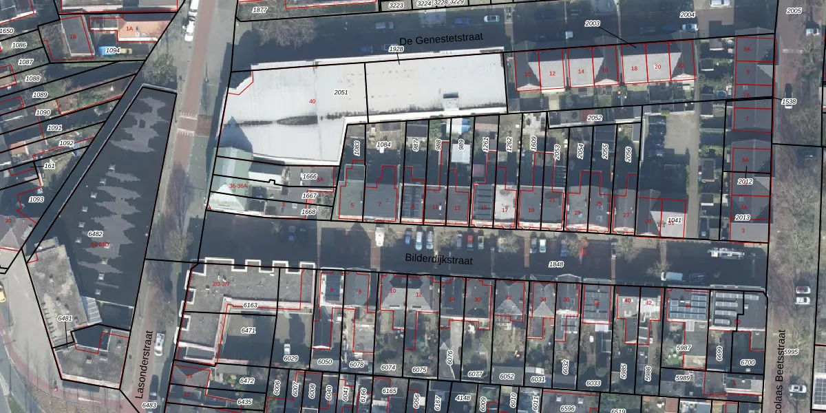 Gebruik de zoekbalk of klik op een perceel voor informatie over de adressen binnen dit perceel.