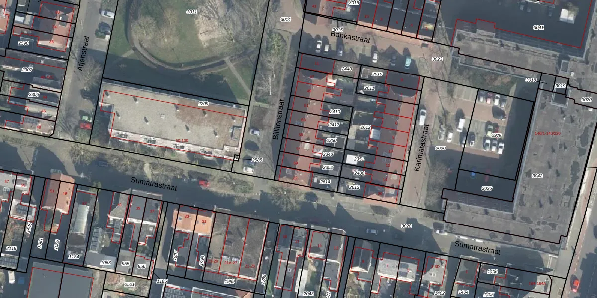 Het perceel waarop Billitonstraat 57 staat heeft een oppervlakte van 103 m². Dit is een middelgroot perceel. De perceeloppervlakte wordt geregistreerd door het Kadaster. Gedetailleerde informatie over de maten van dit perceel kunt u vinden in het rapport Kadastrale kaart met maatvoering van Billitonstraat 57.