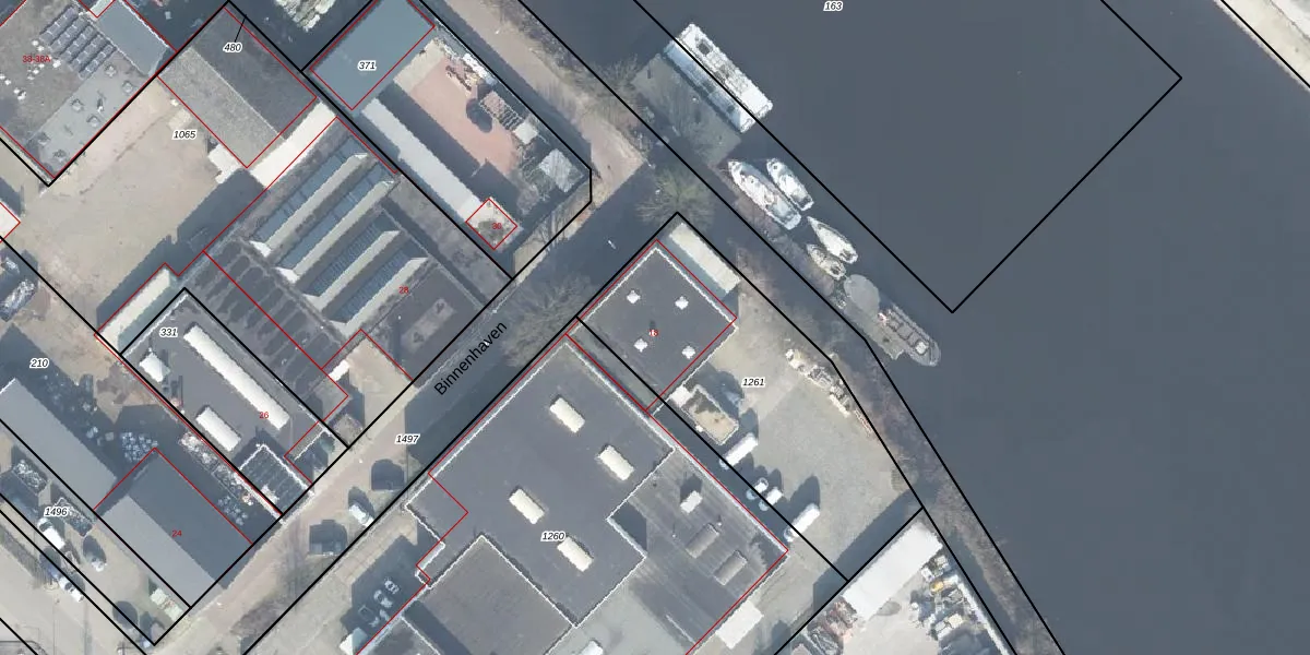Het perceel waarop Binnenhaven 18 staat heeft een oppervlakte van 1203 m². Dit is een zeer groot perceel. De perceeloppervlakte wordt geregistreerd door het Kadaster. Gedetailleerde informatie over de maten van dit perceel kunt u vinden in het rapport Kadastrale kaart met maatvoering van Binnenhaven 18.