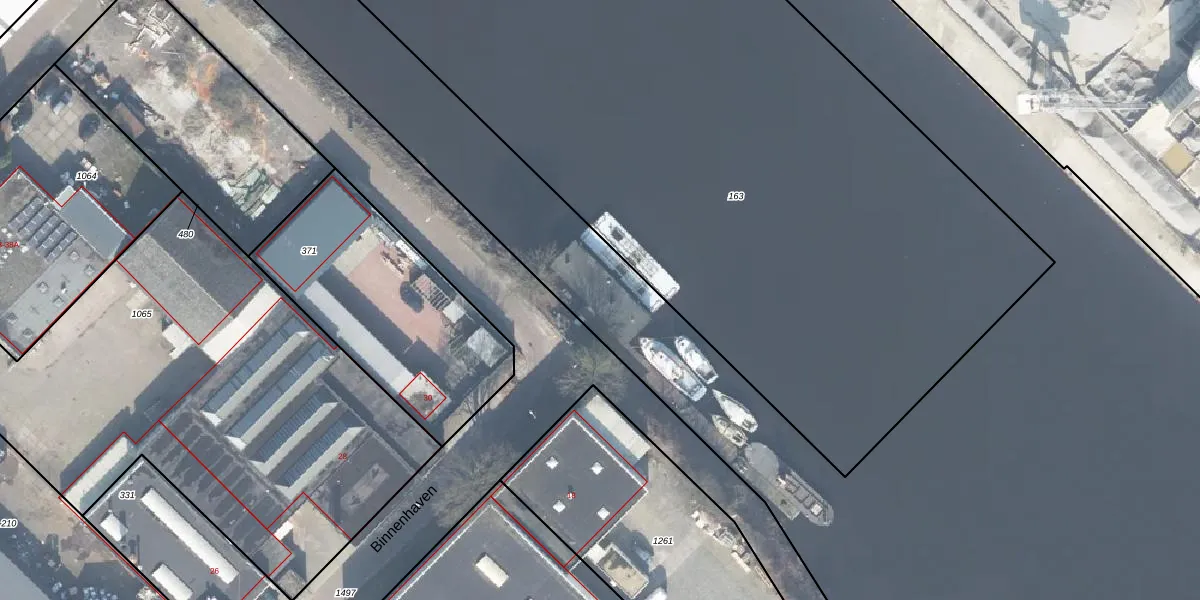 Het perceel waarop Binnenhaven 32-1 staat heeft een oppervlakte van 3,5 ha. Dit is een zeer groot perceel. De perceeloppervlakte wordt geregistreerd door het Kadaster. Gedetailleerde informatie over de maten van dit perceel kunt u vinden in het rapport Kadastrale kaart met maatvoering van Binnenhaven 32-1.
