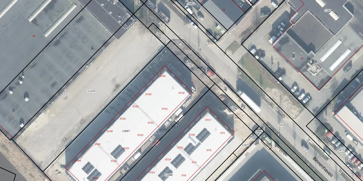 Binnenhaven 37-19 is gelegen op kadastraal perceel LNK00N11847. Deze kadastrale aanduiding is uniek en wordt gebruikt door het Kadaster om eigendomsrechten en andere zakelijke rechten vast te leggen. Het perceel maakt onderdeel uit van de kadastrale gemeente Lonneker.