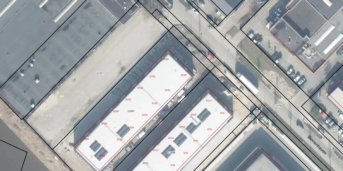 Binnenhaven 37-21 is gelegen op kadastraal perceel LNK00N11847. Deze kadastrale aanduiding is uniek en wordt gebruikt door het Kadaster om eigendomsrechten en andere zakelijke rechten vast te leggen. Het perceel maakt onderdeel uit van de kadastrale gemeente Lonneker.