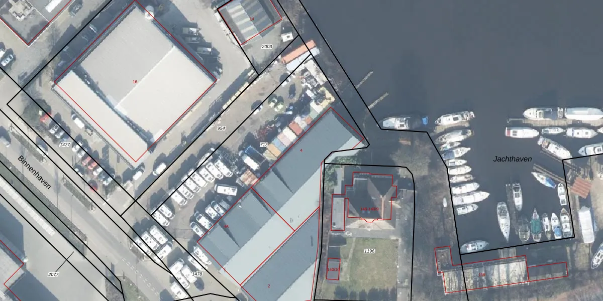 Het perceel waarop Binnenhaven 4 staat heeft een oppervlakte van 3090 m². Dit is een zeer groot perceel. De perceeloppervlakte wordt geregistreerd door het Kadaster. Gedetailleerde informatie over de maten van dit perceel kunt u vinden in het rapport Kadastrale kaart met maatvoering van Binnenhaven 4.