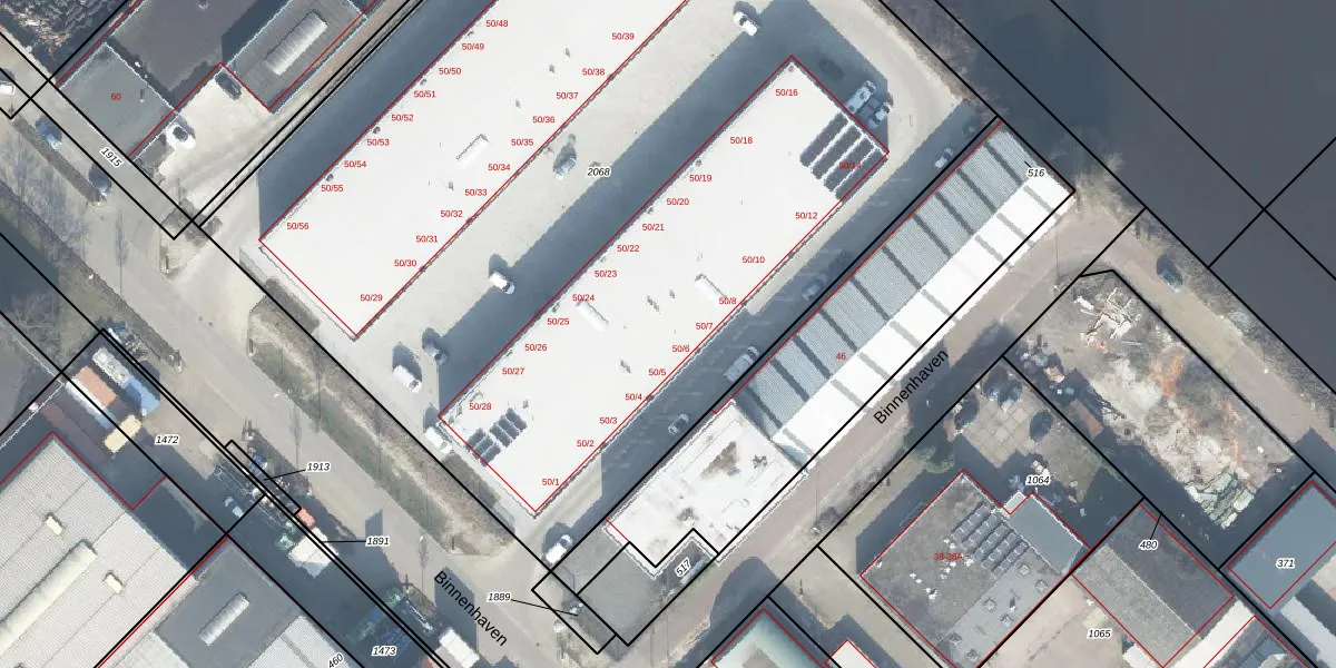 Het perceel waarop Binnenhaven 50-6 staat heeft een oppervlakte van 7027 m². Dit is een zeer groot perceel. De perceeloppervlakte wordt geregistreerd door het Kadaster. Gedetailleerde informatie over de maten van dit perceel kunt u vinden in het rapport Kadastrale kaart met maatvoering van Binnenhaven 50-6.