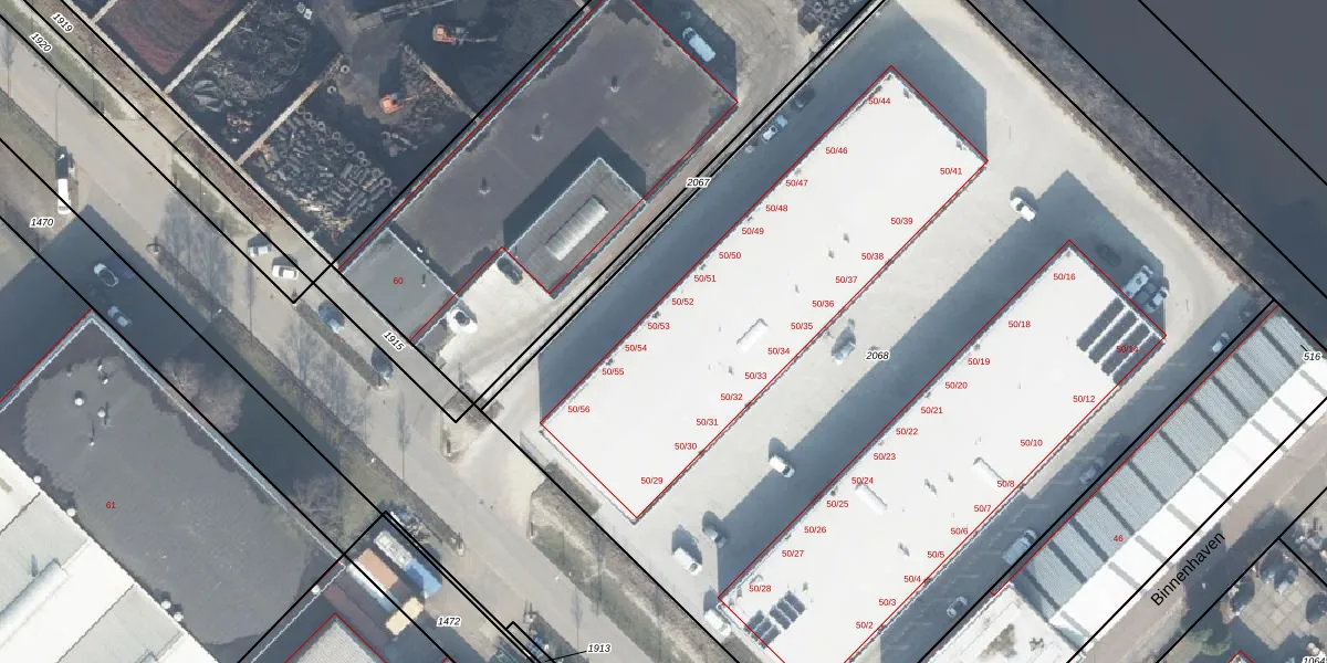 Binnenhaven 50-53 is gelegen op kadastraal perceel LNK00T2068. Deze kadastrale aanduiding is uniek en wordt gebruikt door het Kadaster om eigendomsrechten en andere zakelijke rechten vast te leggen. Het perceel maakt onderdeel uit van de kadastrale gemeente Lonneker.