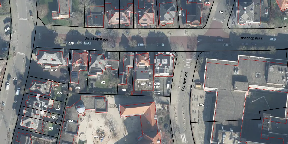 Het perceel waarop Bisschopstraat 41 staat heeft een oppervlakte van 445 m². Dit is een groot perceel. De perceeloppervlakte wordt geregistreerd door het Kadaster. Gedetailleerde informatie over de maten van dit perceel kunt u vinden in het rapport Kadastrale kaart met maatvoering van Bisschopstraat 41.