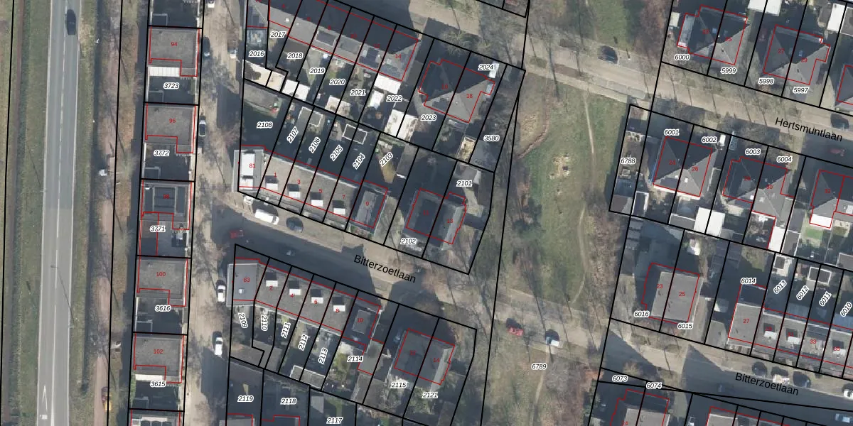 Gebruik de zoekbalk of klik op een perceel voor informatie over de adressen binnen dit perceel.