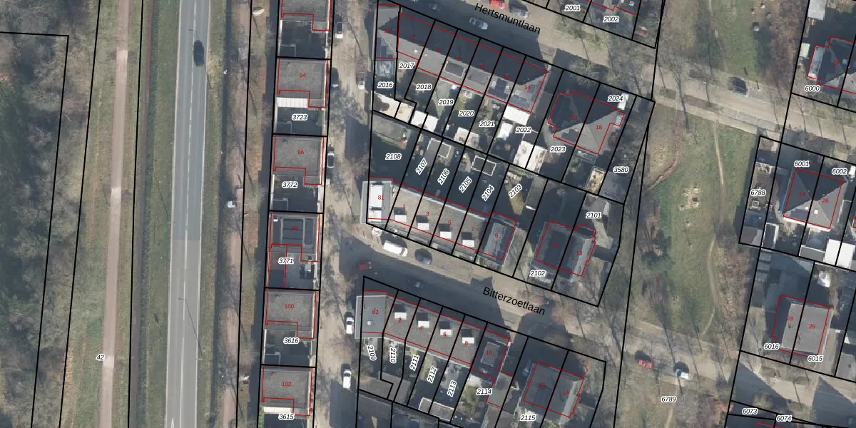 Gebruik de zoekbalk of klik op een perceel voor informatie over de adressen binnen dit perceel.