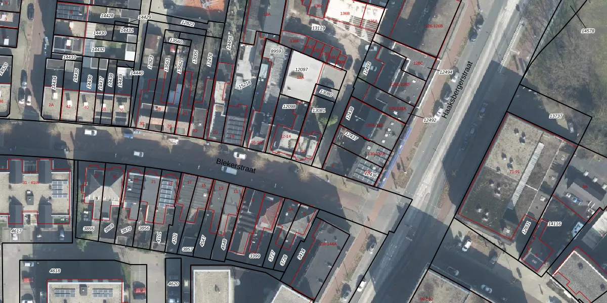 Het perceel waarop Blekerstraat 10 staat heeft een oppervlakte van 165 m². Dit is een middelgroot perceel. De perceeloppervlakte wordt geregistreerd door het Kadaster. Gedetailleerde informatie over de maten van dit perceel kunt u vinden in het rapport Kadastrale kaart met maatvoering van Blekerstraat 10.