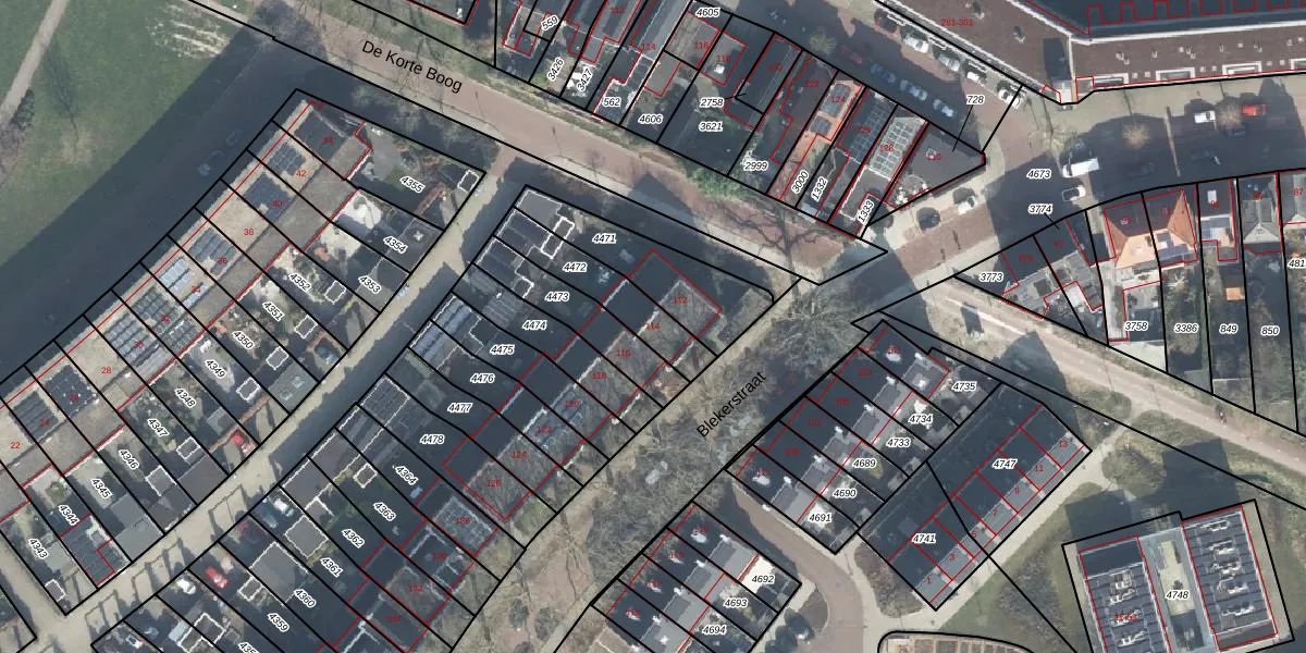 Het perceel waarop Blekerstraat 114 staat heeft een oppervlakte van 215 m². Dit is een middelgroot perceel. De perceeloppervlakte wordt geregistreerd door het Kadaster. Gedetailleerde informatie over de maten van dit perceel kunt u vinden in het rapport Kadastrale kaart met maatvoering van Blekerstraat 114.