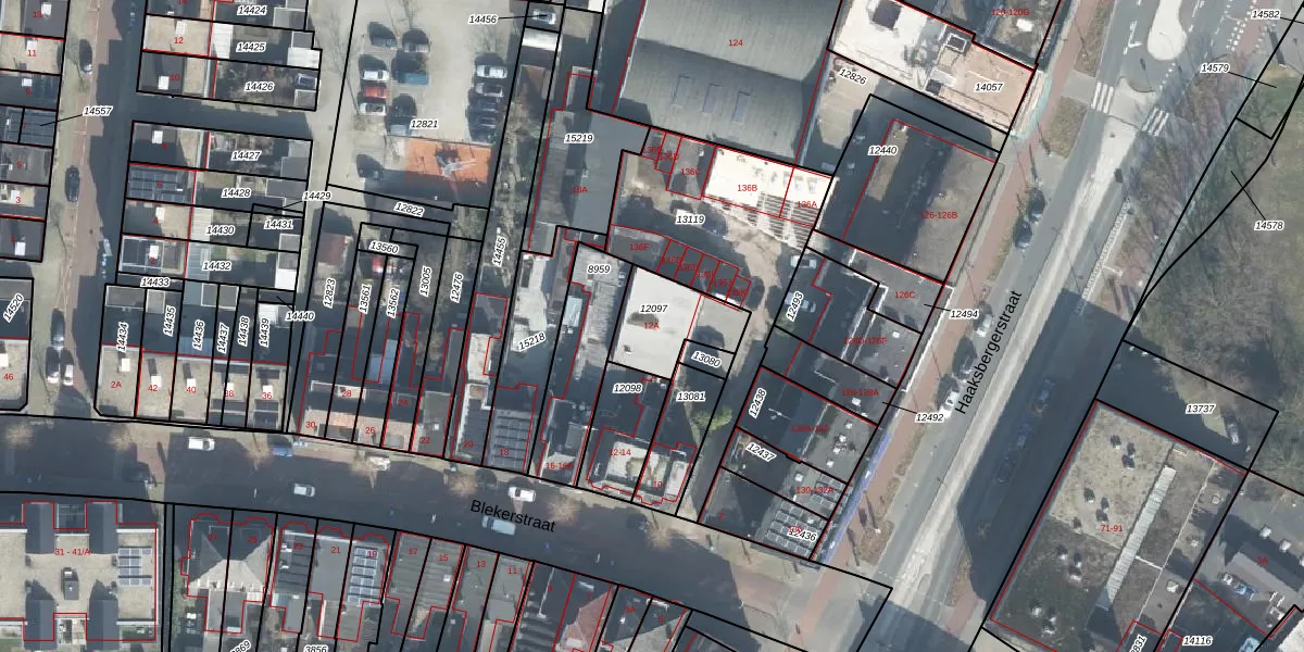 Gebruik de zoekbalk of klik op een perceel voor informatie over de adressen binnen dit perceel.