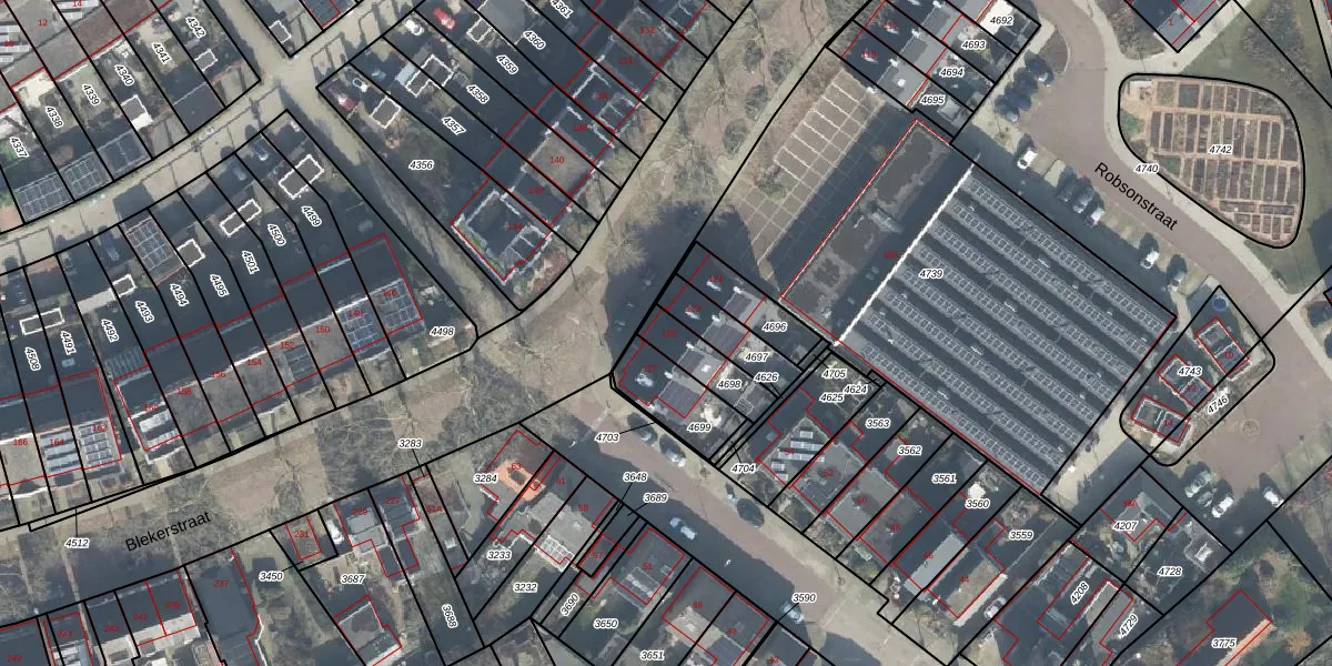 Gebruik de zoekbalk of klik op een perceel voor informatie over de adressen binnen dit perceel.