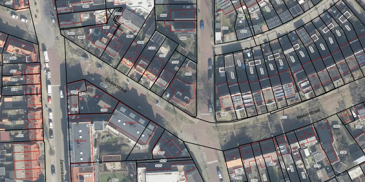 Het perceel waarop Blekerstraat 192 staat heeft een oppervlakte van 383 m². Dit is een groot perceel. De perceeloppervlakte wordt geregistreerd door het Kadaster. Gedetailleerde informatie over de maten van dit perceel kunt u vinden in het rapport Kadastrale kaart met maatvoering van Blekerstraat 192.