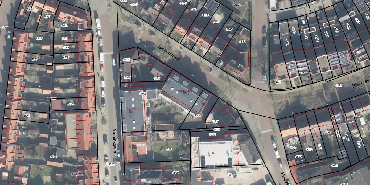 Het perceel waarop Blekerstraat 261-2 staat heeft een oppervlakte van 1070 m². Dit is een zeer groot perceel. De perceeloppervlakte wordt geregistreerd door het Kadaster. Gedetailleerde informatie over de maten van dit perceel kunt u vinden in het rapport Kadastrale kaart met maatvoering van Blekerstraat 261-2.