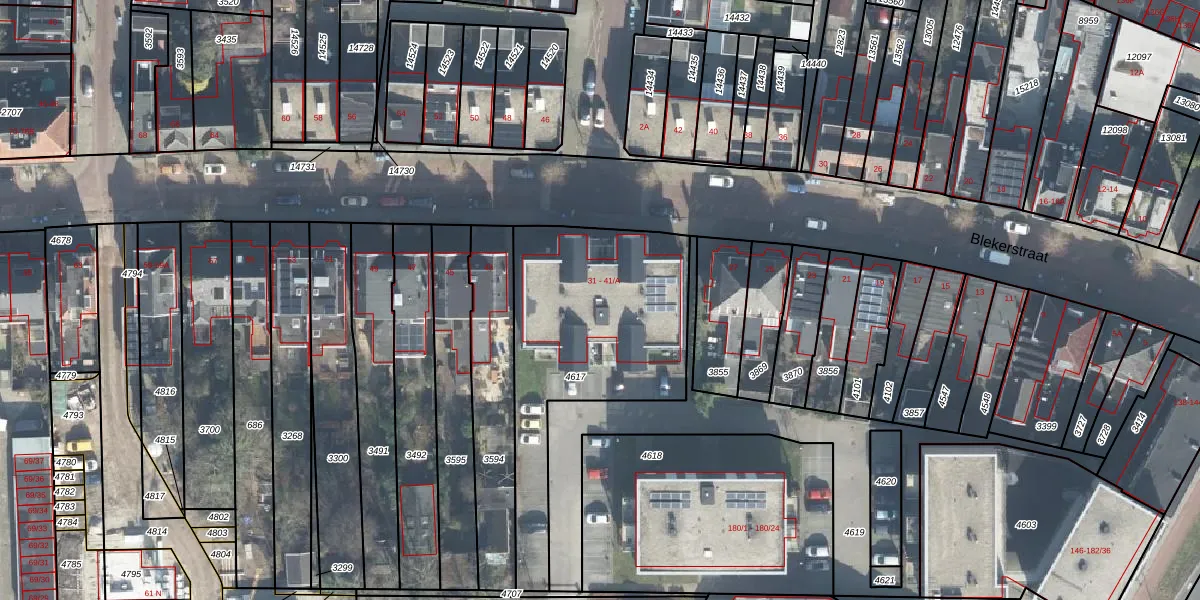 Het perceel waarop Blekerstraat 41-A staat heeft een oppervlakte van 1003 m². Dit is een zeer groot perceel. De perceeloppervlakte wordt geregistreerd door het Kadaster. Gedetailleerde informatie over de maten van dit perceel kunt u vinden in het rapport Kadastrale kaart met maatvoering van Blekerstraat 41-A.