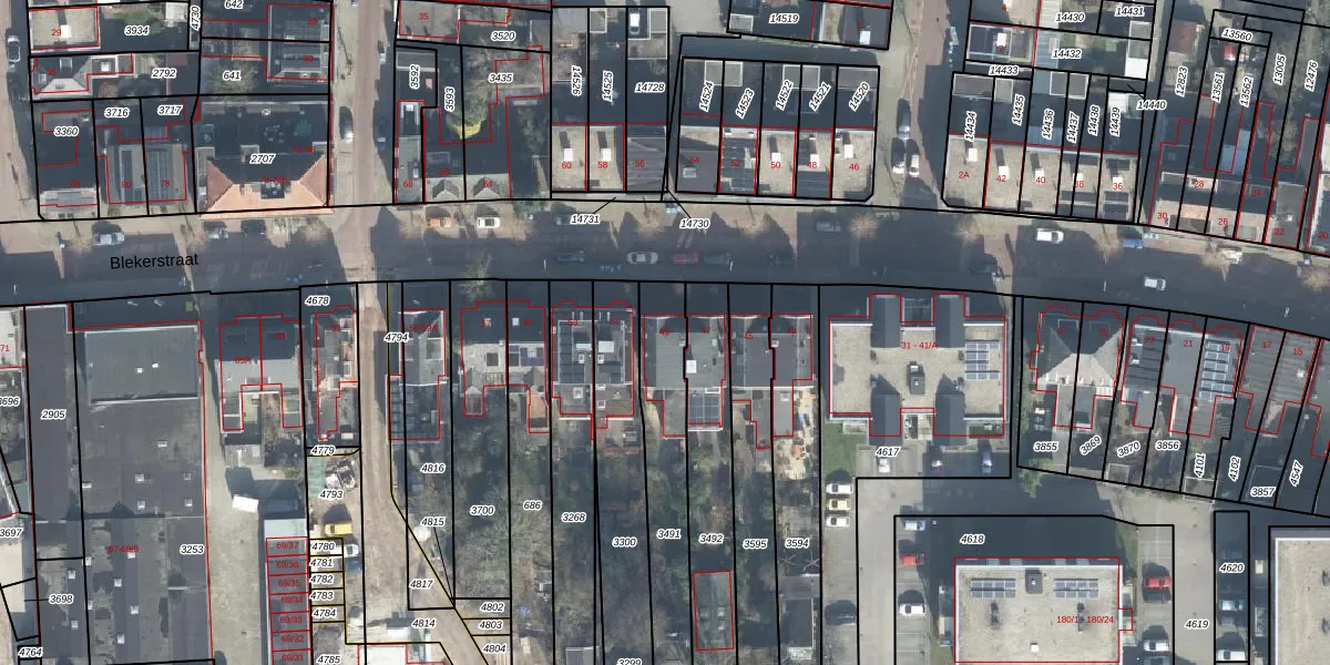 Het perceel waarop Blekerstraat 49 staat heeft een oppervlakte van 394 m². Dit is een groot perceel. De perceeloppervlakte wordt geregistreerd door het Kadaster. Gedetailleerde informatie over de maten van dit perceel kunt u vinden in het rapport Kadastrale kaart met maatvoering van Blekerstraat 49.