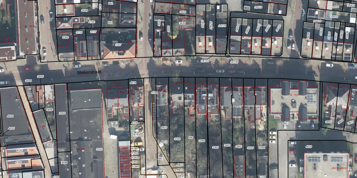 Het perceel waarop Blekerstraat 57 staat heeft een oppervlakte van 404 m². Dit is een groot perceel. De perceeloppervlakte wordt geregistreerd door het Kadaster. Gedetailleerde informatie over de maten van dit perceel kunt u vinden in het rapport Kadastrale kaart met maatvoering van Blekerstraat 57.
