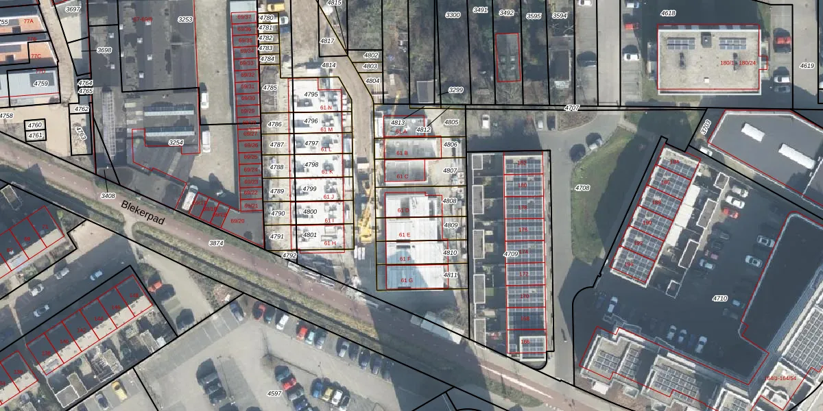 Gebruik de zoekbalk of klik op een perceel voor informatie over de adressen binnen dit perceel.