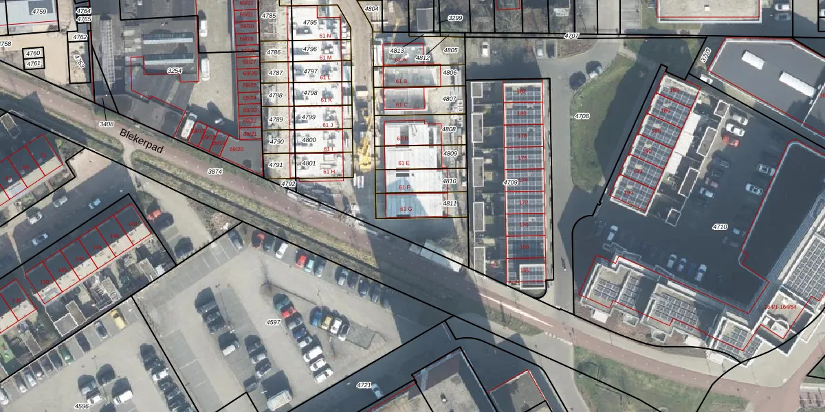 Gebruik de zoekbalk of klik op een perceel voor informatie over de adressen binnen dit perceel.