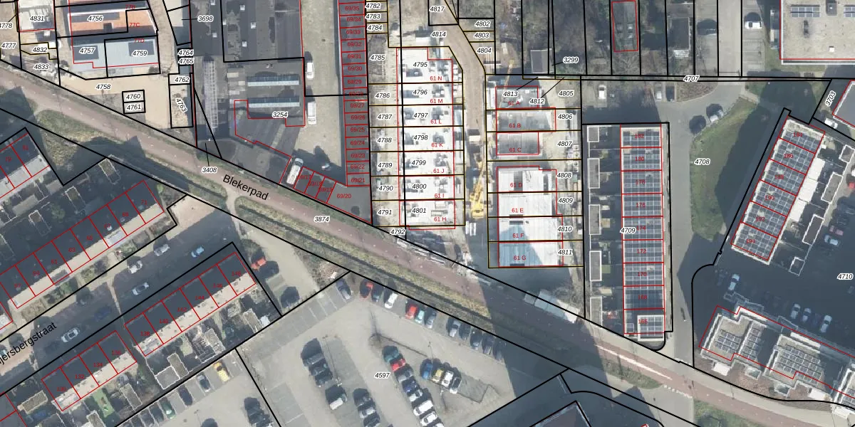 Blekerstraat 61-H is gelegen op kadastraal perceel ESD00G4801. Deze kadastrale aanduiding is uniek en wordt gebruikt door het Kadaster om eigendomsrechten en andere zakelijke rechten vast te leggen. Het perceel maakt onderdeel uit van de kadastrale gemeente Enschede.