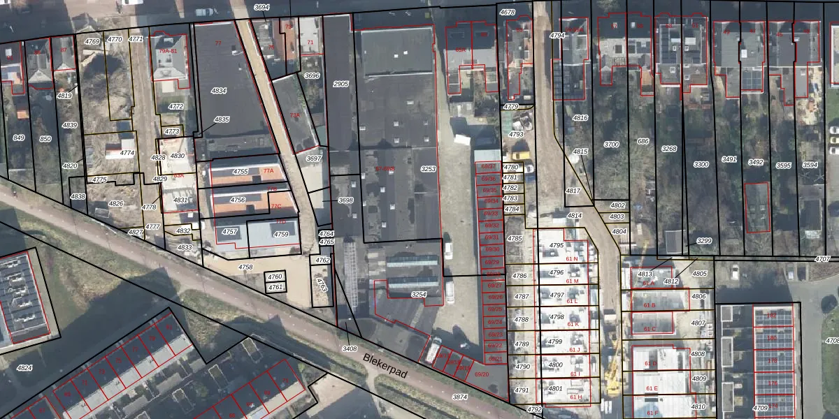 Het perceel waarop Blekerstraat 69-5 staat heeft een oppervlakte van 2005 m². Dit is een zeer groot perceel. De perceeloppervlakte wordt geregistreerd door het Kadaster. Gedetailleerde informatie over de maten van dit perceel kunt u vinden in het rapport Kadastrale kaart met maatvoering van Blekerstraat 69-5.