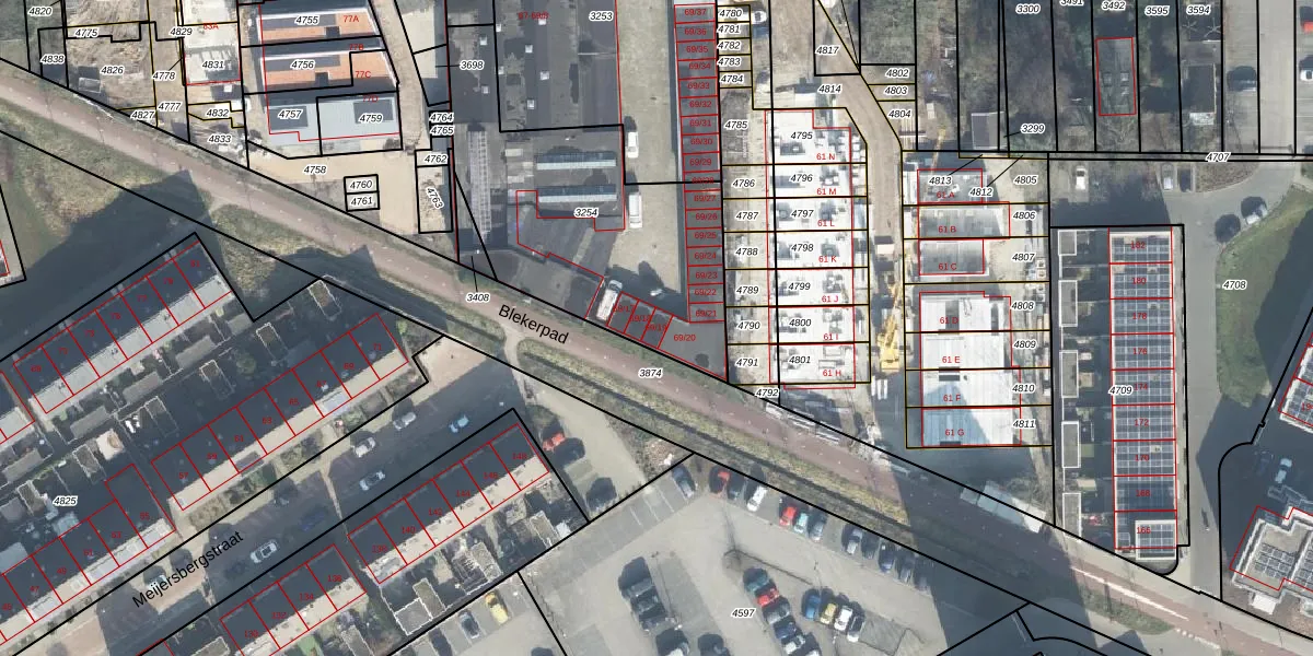 Het perceel waarop Blekerstraat 69-19 staat heeft een oppervlakte van 1178 m². Dit is een zeer groot perceel. De perceeloppervlakte wordt geregistreerd door het Kadaster. Gedetailleerde informatie over de maten van dit perceel kunt u vinden in het rapport Kadastrale kaart met maatvoering van Blekerstraat 69-19.