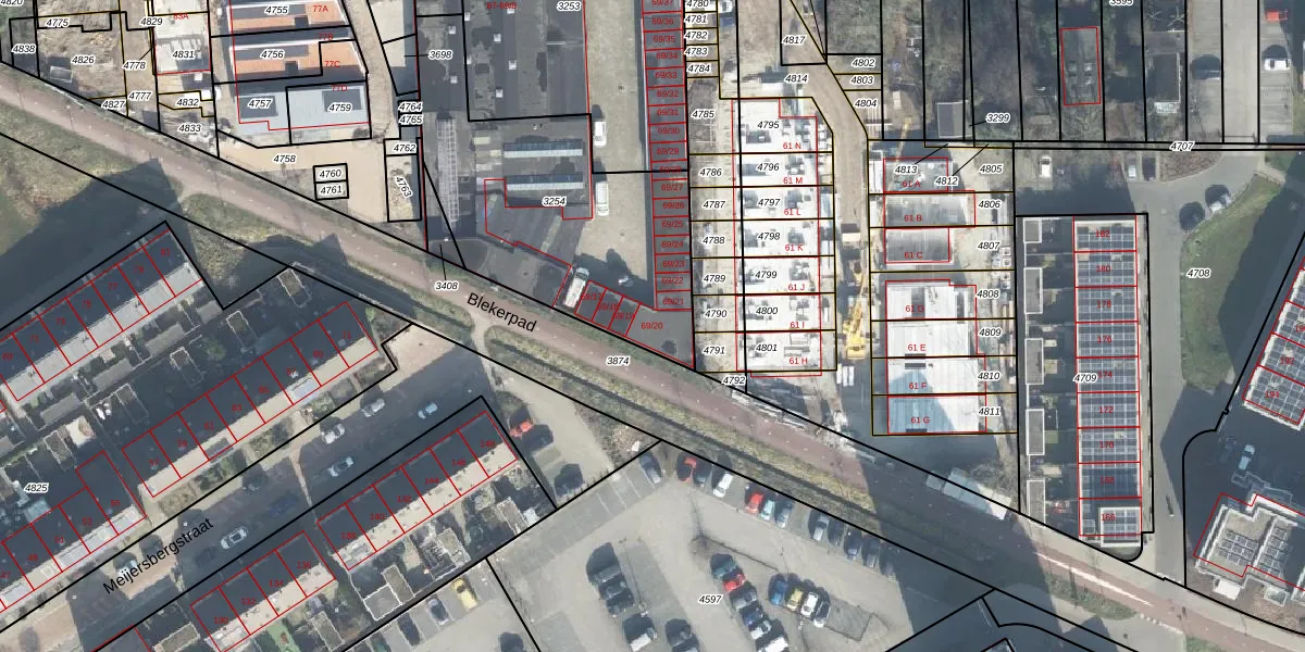 Het perceel waarop Blekerstraat 69-20 staat heeft een oppervlakte van 1178 m². Dit is een zeer groot perceel. De perceeloppervlakte wordt geregistreerd door het Kadaster. Gedetailleerde informatie over de maten van dit perceel kunt u vinden in het rapport Kadastrale kaart met maatvoering van Blekerstraat 69-20.