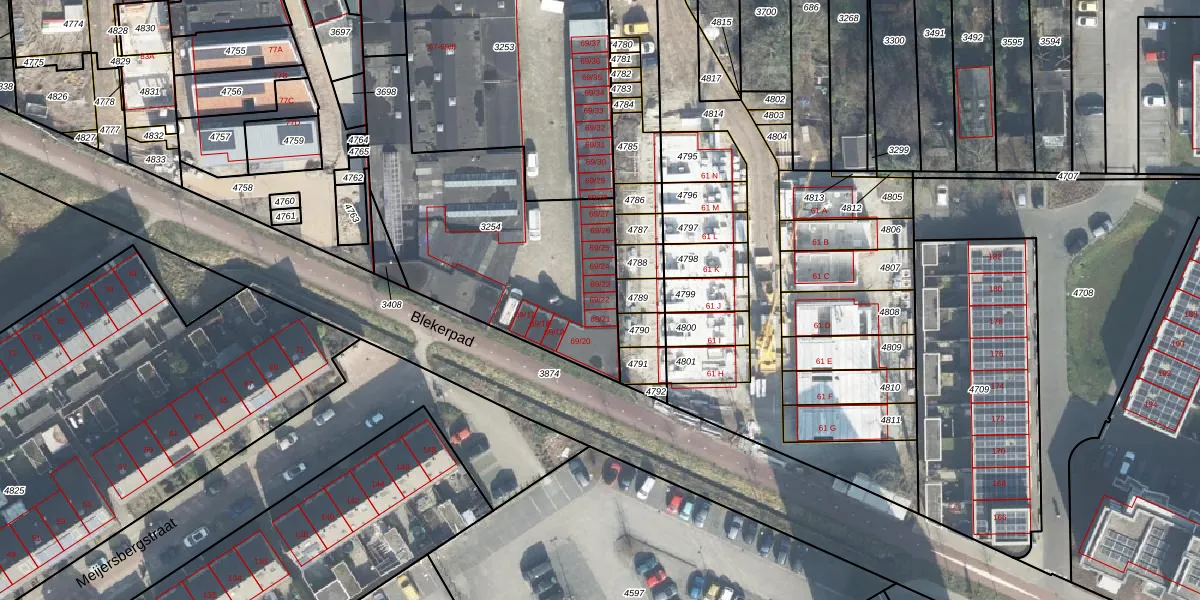Het perceel waarop Blekerstraat 69-22 staat heeft een oppervlakte van 1178 m². Dit is een zeer groot perceel. De perceeloppervlakte wordt geregistreerd door het Kadaster. Gedetailleerde informatie over de maten van dit perceel kunt u vinden in het rapport Kadastrale kaart met maatvoering van Blekerstraat 69-22.