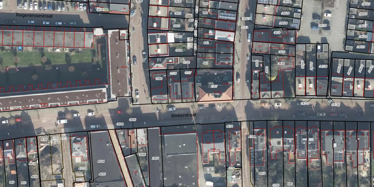 Gebruik de zoekbalk of klik op een perceel voor informatie over de adressen binnen dit perceel.