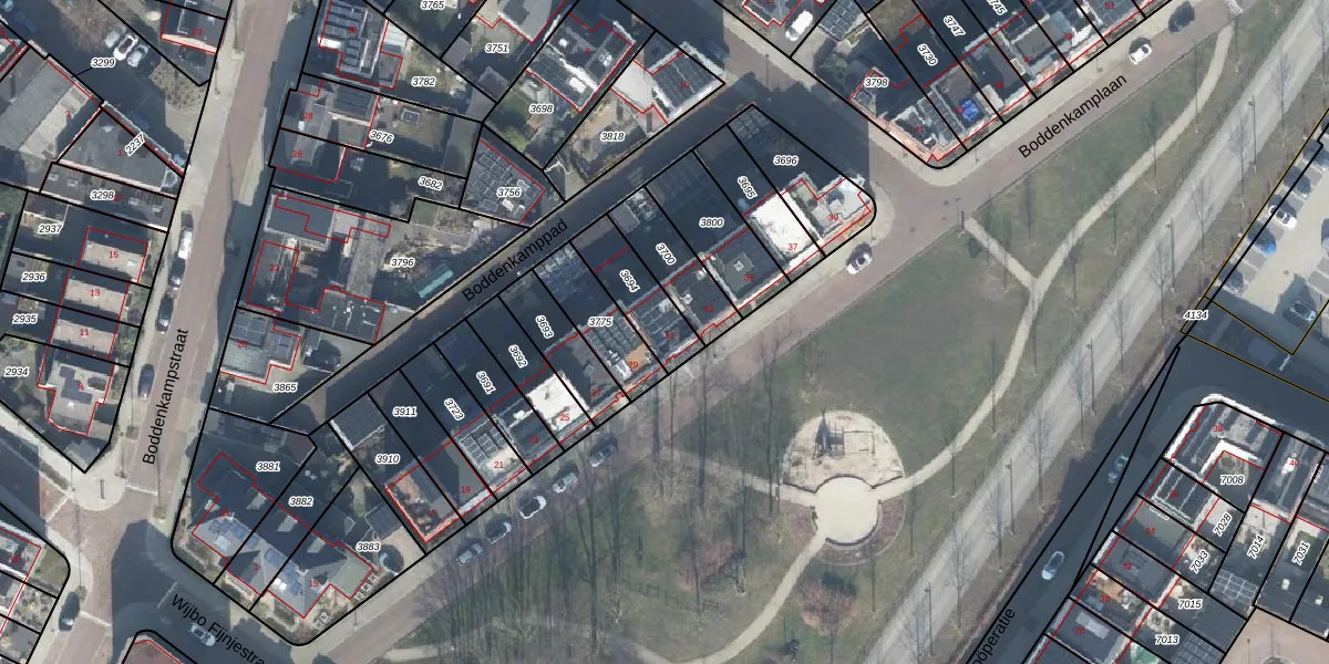 Het perceel waarop Boddenkamplaan 31 staat heeft een oppervlakte van 175 m². Dit is een middelgroot perceel. De perceeloppervlakte wordt geregistreerd door het Kadaster. Gedetailleerde informatie over de maten van dit perceel kunt u vinden in het rapport Kadastrale kaart met maatvoering van Boddenkamplaan 31.