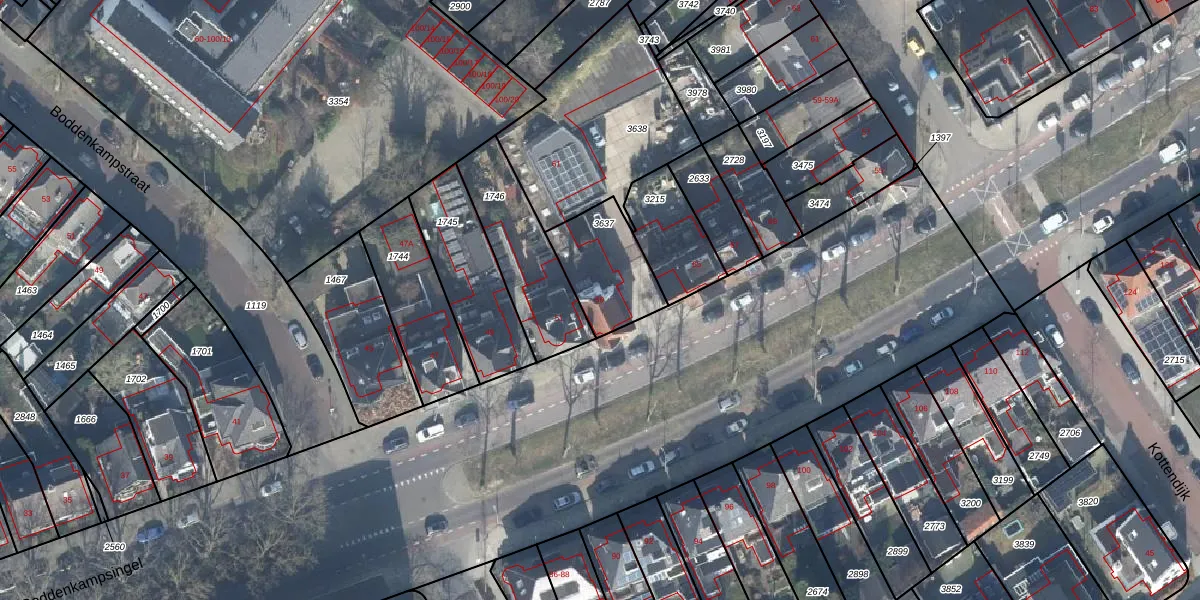 Boddenkampsingel 59 is gelegen op kadastraal perceel ESD00K3637. Deze kadastrale aanduiding is uniek en wordt gebruikt door het Kadaster om eigendomsrechten en andere zakelijke rechten vast te leggen. Het perceel maakt onderdeel uit van de kadastrale gemeente Enschede.