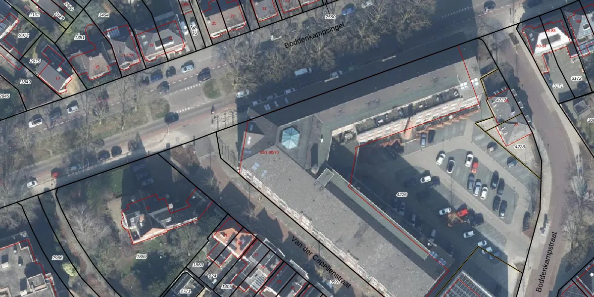 Het perceel waarop Boddenkampsingel 80-50 staat heeft een oppervlakte van 5705 m². Dit is een zeer groot perceel. De perceeloppervlakte wordt geregistreerd door het Kadaster. Gedetailleerde informatie over de maten van dit perceel kunt u vinden in het rapport Kadastrale kaart met maatvoering van Boddenkampsingel 80-50.