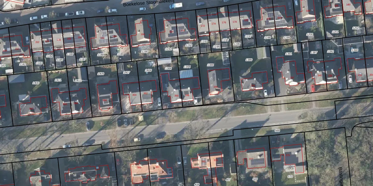 Gebruik de zoekbalk of klik op een perceel voor informatie over de adressen binnen dit perceel.