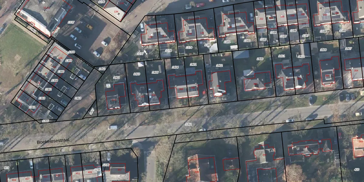Boekelosestraat 368 is gelegen op kadastraal perceel LNK00V1404. Deze kadastrale aanduiding is uniek en wordt gebruikt door het Kadaster om eigendomsrechten en andere zakelijke rechten vast te leggen. Het perceel maakt onderdeel uit van de kadastrale gemeente Lonneker.