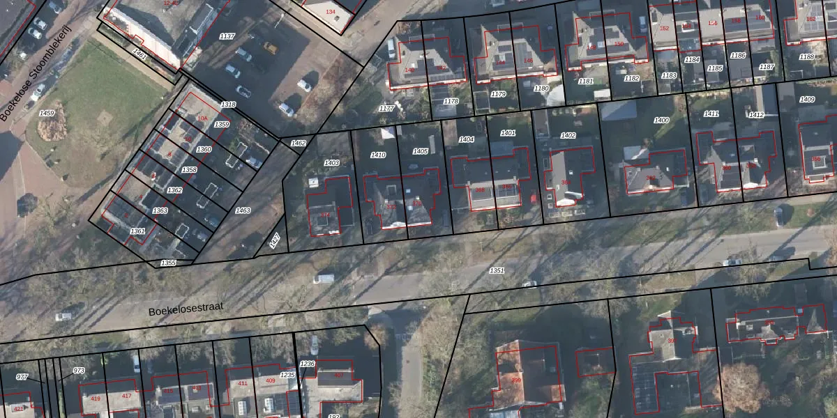 Boekelosestraat 370 is gelegen op kadastraal perceel LNK00V1405. Deze kadastrale aanduiding is uniek en wordt gebruikt door het Kadaster om eigendomsrechten en andere zakelijke rechten vast te leggen. Het perceel maakt onderdeel uit van de kadastrale gemeente Lonneker.
