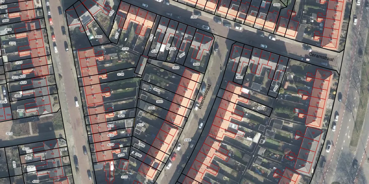 Het perceel waarop Boeroestraat 6 staat heeft een oppervlakte van 1226 m². Dit is een zeer groot perceel. De perceeloppervlakte wordt geregistreerd door het Kadaster. Gedetailleerde informatie over de maten van dit perceel kunt u vinden in het rapport Kadastrale kaart met maatvoering van Boeroestraat 6.