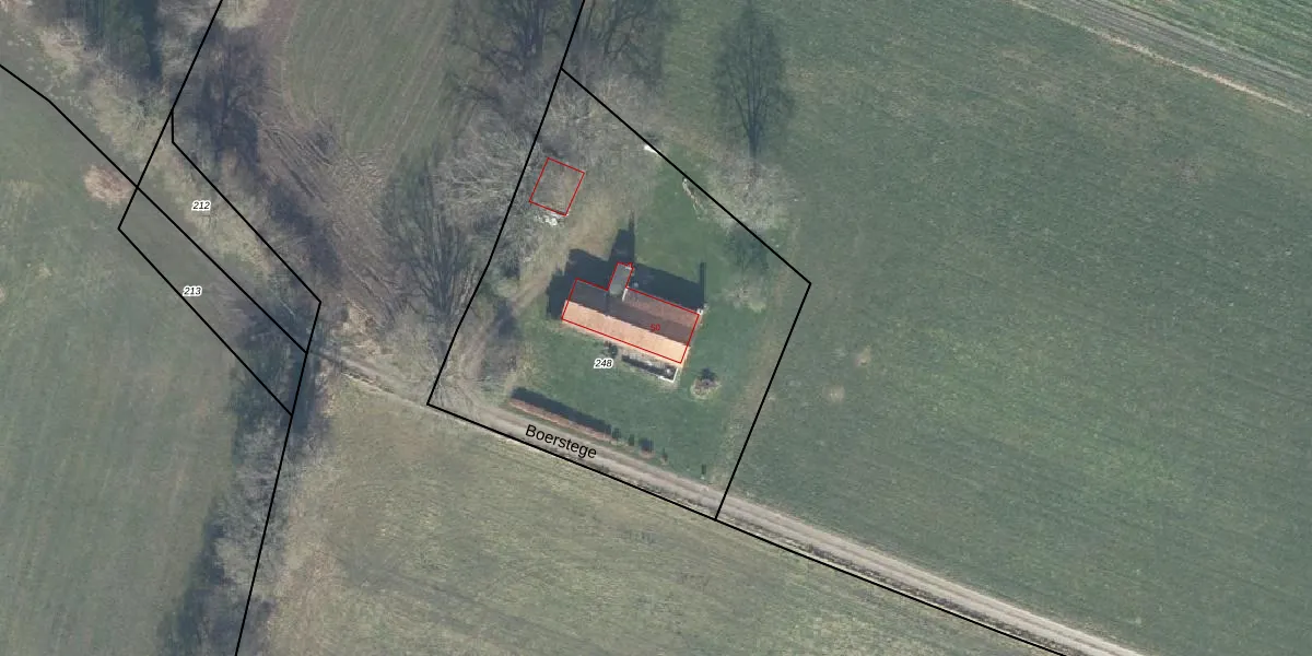 Het perceel waarop Boerstege 50 staat heeft een oppervlakte van 2205 m². Dit is een zeer groot perceel. De perceeloppervlakte wordt geregistreerd door het Kadaster. Gedetailleerde informatie over de maten van dit perceel kunt u vinden in het rapport Kadastrale kaart met maatvoering van Boerstege 50.