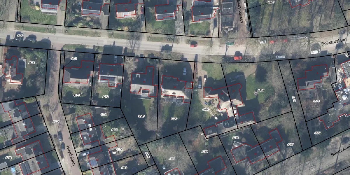 Het perceel waarop Bolhaarslaan 25 staat heeft een oppervlakte van 799 m². Dit is een groot perceel. De perceeloppervlakte wordt geregistreerd door het Kadaster. Gedetailleerde informatie over de maten van dit perceel kunt u vinden in het rapport Kadastrale kaart met maatvoering van Bolhaarslaan 25.