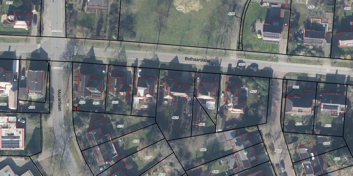 Het perceel waarop Bolhaarslaan 53 staat heeft een oppervlakte van 780 m². Dit is een groot perceel. De perceeloppervlakte wordt geregistreerd door het Kadaster. Gedetailleerde informatie over de maten van dit perceel kunt u vinden in het rapport Kadastrale kaart met maatvoering van Bolhaarslaan 53.