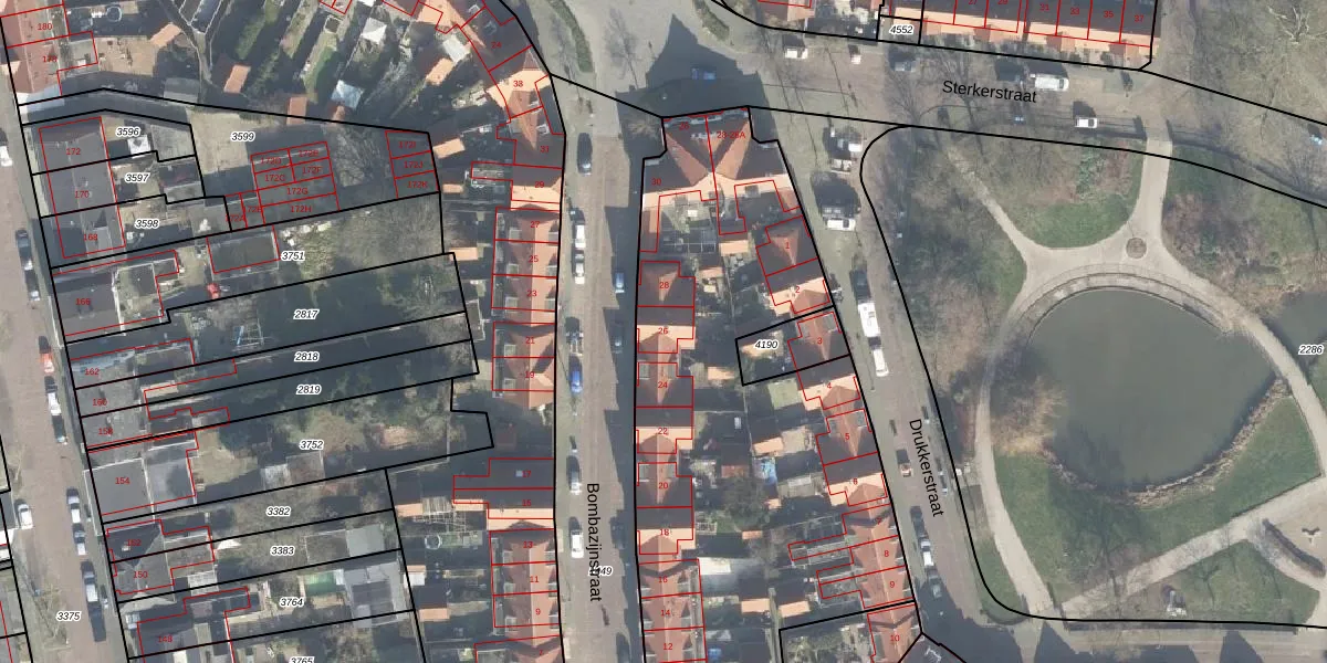 Het perceel waarop Bombazijnstraat 26 staat heeft een oppervlakte van 6975 m². Dit is een zeer groot perceel. De perceeloppervlakte wordt geregistreerd door het Kadaster. Gedetailleerde informatie over de maten van dit perceel kunt u vinden in het rapport Kadastrale kaart met maatvoering van Bombazijnstraat 26.