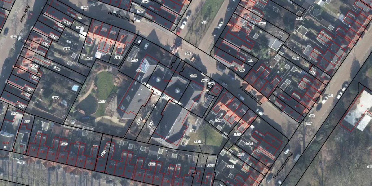 Het perceel waarop Bonairestraat 9-1 staat heeft een oppervlakte van 328 m². Dit is een groot perceel. De perceeloppervlakte wordt geregistreerd door het Kadaster. Gedetailleerde informatie over de maten van dit perceel kunt u vinden in het rapport Kadastrale kaart met maatvoering van Bonairestraat 9-1.