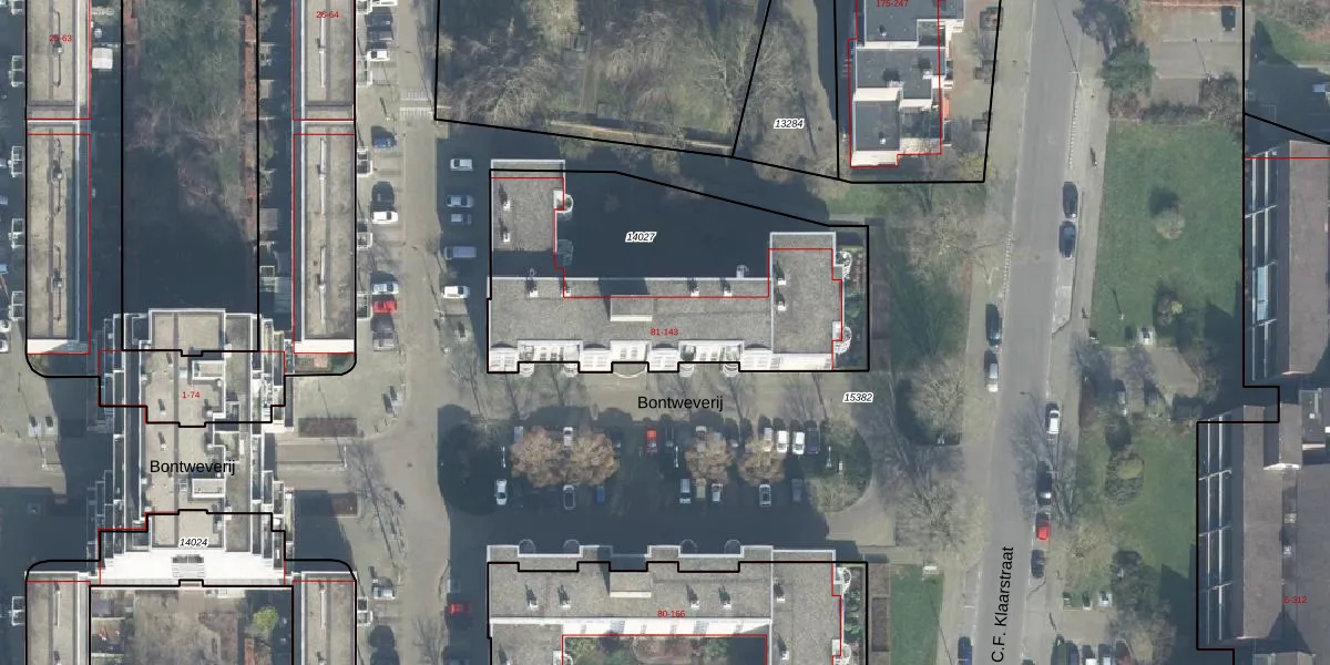 Het perceel waarop Bontweverij 141 staat heeft een oppervlakte van 1504 m². Dit is een zeer groot perceel. De perceeloppervlakte wordt geregistreerd door het Kadaster. Gedetailleerde informatie over de maten van dit perceel kunt u vinden in het rapport Kadastrale kaart met maatvoering van Bontweverij 141.